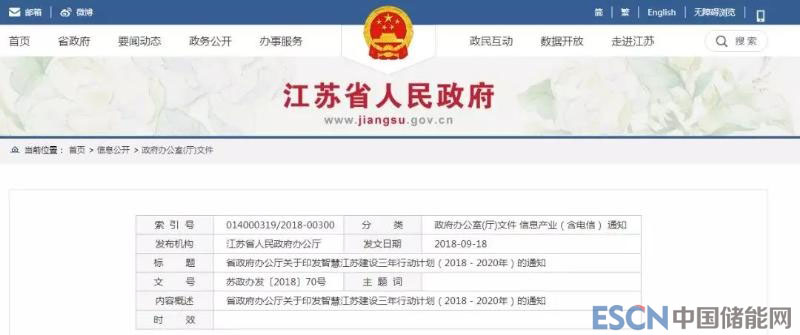 省政府辦公廳關(guān)于印發(fā)智慧江蘇建設(shè)三年行動計劃(2018-2020年)的通知