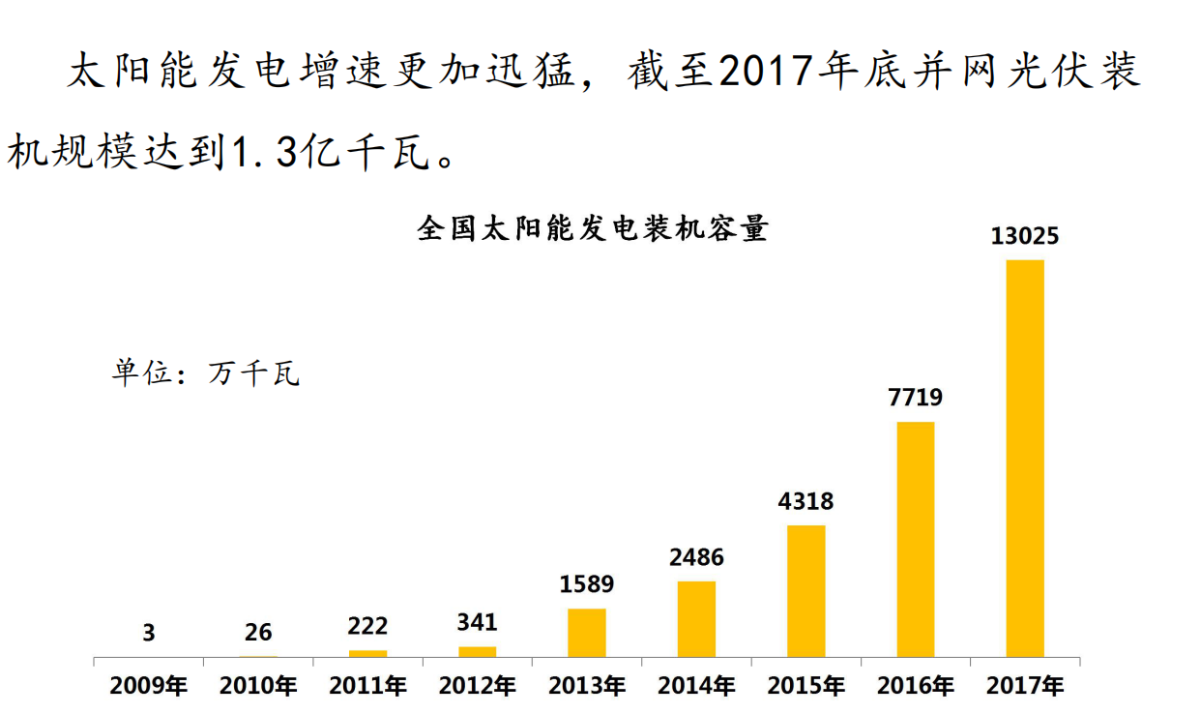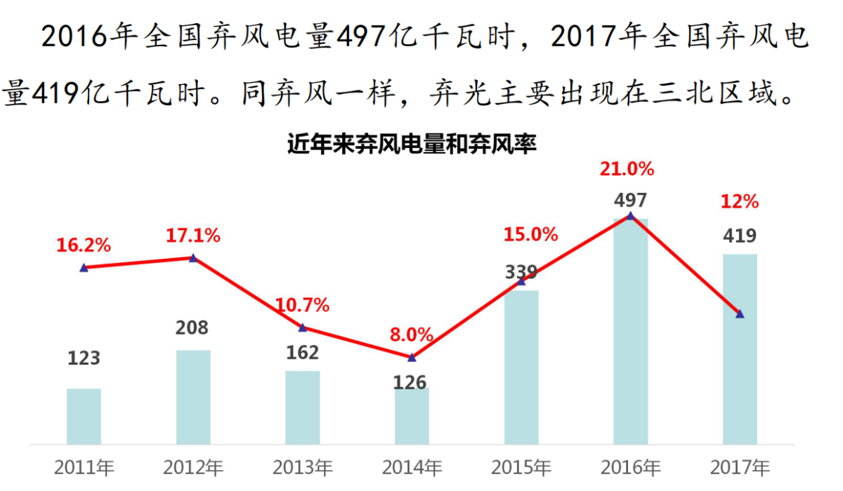 2016年棄風(fēng)電量接近500億,2017年略有好轉(zhuǎn),但總體上來(lái)講每年新能源棄風(fēng)棄光量都很大。今年情況稍好,2017年下半年開始用電量總體增速大,經(jīng)濟(jì)按照官方的提法是相對(duì)平穩(wěn)向好的局面,但用電量增長(zhǎng)的很快,和高耗能的復(fù)工加大產(chǎn)量相關(guān),這些用電量的增長(zhǎng)帶動(dòng)了消納,好像消納問題得到了緩解,但是大家關(guān)注行業(yè)政策以及市場(chǎng),包括中美貿(mào)易戰(zhàn),一旦有比較大沖擊的時(shí)候,用電量下來(lái)以后這個(gè)現(xiàn)象將非常嚴(yán)重。