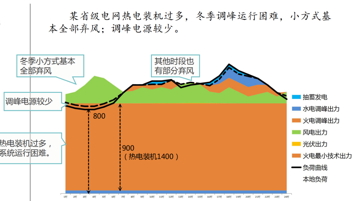 調(diào)峰主要是為了滿足電力系統(tǒng)日尖峰負(fù)荷需要,對(duì)發(fā)電機(jī)組出力所進(jìn)行的調(diào)整。我們國(guó)家的分布差越來(lái)越大,特別是像一些發(fā)達(dá)的省份、發(fā)達(dá)的城市,峰谷差尤其大,所以調(diào)峰問題日益復(fù)雜。某省級(jí)電網(wǎng)電源調(diào)峰能力不足,風(fēng)電光伏規(guī)模較大,低谷時(shí)段需要棄風(fēng),午間需要棄光。某西北省份由于冬季供熱導(dǎo)致調(diào)節(jié)能力下降,沒有辦法,小方式時(shí)基本需要棄風(fēng)棄光。