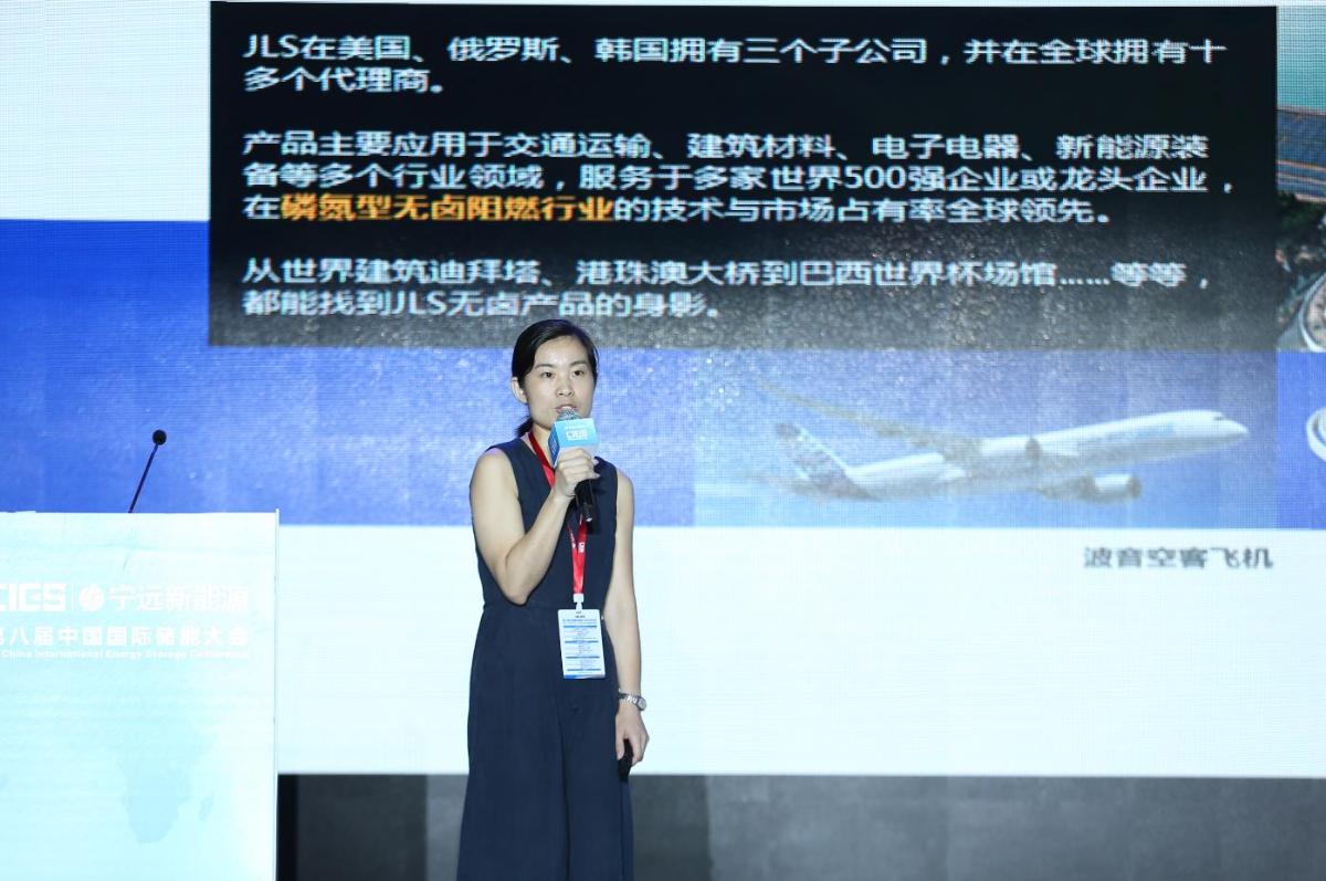 杭州捷爾思阻燃化工有限公司研發(fā)經(jīng)理胡燕在儲(chǔ)能電池專場,以“無鹵阻燃電池材料創(chuàng)新解決方案--低成本、輕量化、高安全、可回收”為題,發(fā)表了精彩演講。