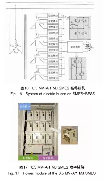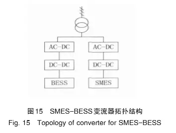 風(fēng)力發(fā)電存在不連續(xù)、不穩(wěn)定的特點(diǎn),直接并網(wǎng)會造成電壓閃變、功率頻率波動等不良影響。同時,風(fēng)電場必須具備低電壓穿越(lowvoltageridethrough,LVRT)能力,以消除潛在的安全隱患。研究表明,SMES-BESS在穩(wěn)定電壓波動、平抑風(fēng)電功率波動及提高低電壓穿越能力方面具有重要作用。圖15為SMES-BESS變流器的拓?fù)浣Y(jié)構(gòu)。