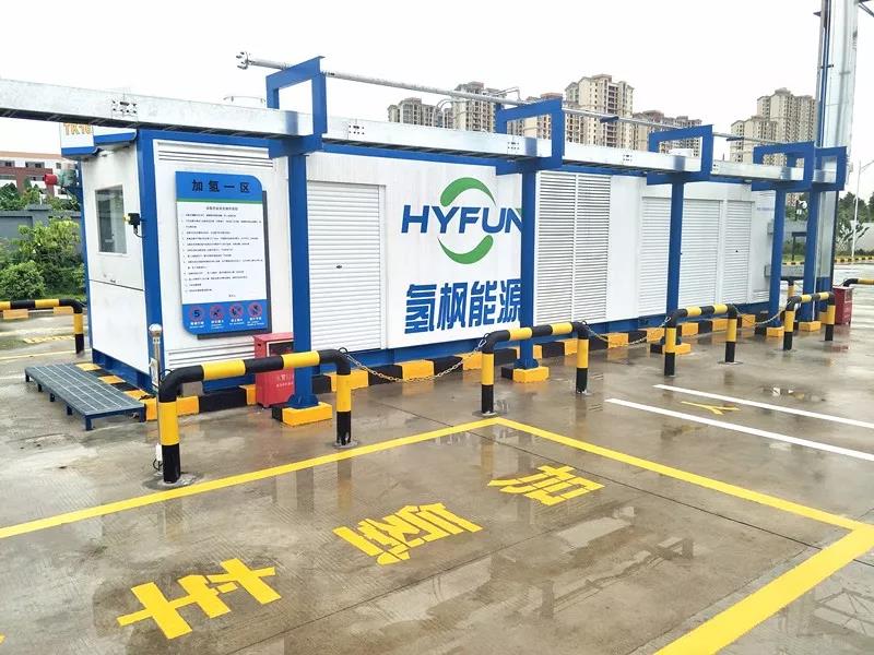 當前,廣東省佛山市三水區(qū)國鴻公交站內就建有這樣的一座臨時加氫站,由氫楓建設和運營。它的日加注量(12小時)為60kg—100kg。這個臨時加氫站已經運行了1年多的時間,該地區(qū)22輛氫燃料公交車之中有12輛都是在這個站進行加氫。