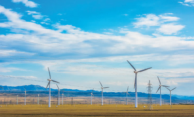 圖為位于新疆烏魯木齊市達坂城區(qū)的風力發(fā)電設(shè)施
