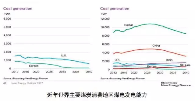 設(shè)備老化以及可再生能源的發(fā)展導(dǎo)致了目前煤電衰退的現(xiàn)狀。到2040年,歐洲及美國的煤電產(chǎn)能將分別下降87%和51%。但預(yù)言煤電產(chǎn)能全部退出市場還為時(shí)尚早,以亞洲為例,煤電在一段時(shí)間內(nèi)仍將在能源系統(tǒng)中扮演重要的角色