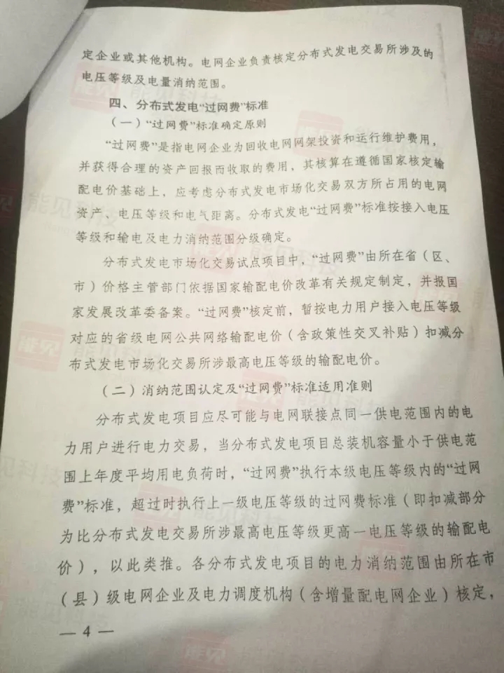 這份文件最最關(guān)鍵的突破是明確了分布式發(fā)電項(xiàng)目與電力用戶交易的過網(wǎng)費(fèi)。