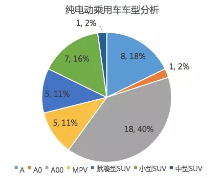 本批目錄依然以 A00 級微型車為主, A 級車和小型 SUV 緊隨其后; A0 級轎車和中型 SUV 和占比較少;并未出現(xiàn)中大尺寸的轎車或SUV車型。