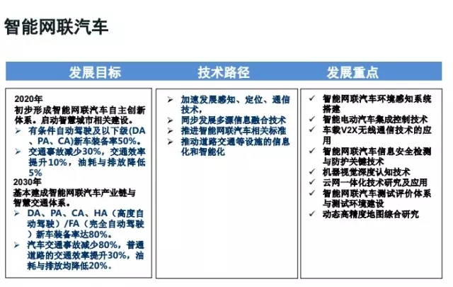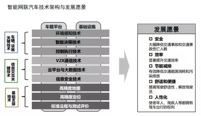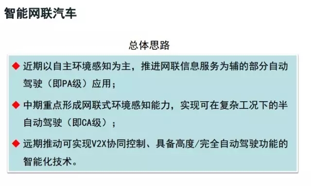智能網(wǎng)聯(lián)汽車技術(shù)路線重點(diǎn)在于開展以環(huán)境感知技術(shù),高精度定位與地圖,車載終端機(jī)人機(jī)接口(HMI)產(chǎn)品,集成控制及執(zhí)行系統(tǒng)為代表的關(guān)鍵零部件技術(shù)研究,開展以多源信息融合技術(shù),車輛協(xié)同控制技術(shù),通信與信息交互平臺(tái)技術(shù),電子電氣架構(gòu),信息安全技術(shù),人機(jī)交互與共駕駛技術(shù),道路基礎(chǔ)設(shè)施,標(biāo)準(zhǔn)法規(guī)等為代表的共性關(guān)鍵技術(shù)研究。