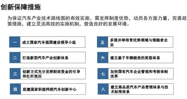 汽車產(chǎn)業(yè)規(guī)模大,關(guān)聯(lián)行業(yè)多,且是眾多產(chǎn)業(yè)技術(shù)創(chuàng)新的集合體。有效實(shí)施汽車產(chǎn)業(yè)技術(shù)路線圖,推動(dòng)汽車產(chǎn)業(yè)由大變強(qiáng),必須發(fā)揮制度優(yōu)勢(shì),動(dòng)員各方面力量,完善政策措施,建立靈活高效的實(shí)施機(jī)制,營(yíng)造良好的發(fā)展環(huán)境。