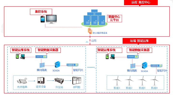 “科諾偉業(yè)新能源智能運維解決方案(iCoronaCloud 解決方案)” 是一套完整的新能源電站運行、維護、經(jīng)營的管理方案,從電站現(xiàn)場運維管理到遠程集中監(jiān)視及分析,滿足發(fā)電企業(yè)高效智能運維的需要。全套解決方案包括數(shù)據(jù)中心云平臺、集控系統(tǒng)、運維管理系統(tǒng)、智能數(shù)據(jù)采集器。主要應(yīng)用于多個光伏電站的遠程集中監(jiān)視及智能運維、多個風(fēng)電場的遠程集中監(jiān)視及智能運維、區(qū)域分布式能源的集控與智能運維、多個變/配電站的智能運維等領(lǐng)域。