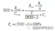 中國(guó)防化科學(xué)研究院楊裕生院士等學(xué)者最先提出了YCC指數(shù)方法式中,YCC為經(jīng)濟(jì)效益指數(shù);Rtotal為總收益,元/kW·h;Ctotal為總成本,元/kW·h;Rout為釋能電價(jià),元/kW·h;Rin為儲(chǔ)能電價(jià),元/kW·h;η為儲(chǔ)能系統(tǒng)效率;C為輸出1 kW·h電能的初始投資, 元/kW·h;C0為輸出1 kW·h電能的運(yùn)行成本,元/kW·h;DOD為充放電深度;L為循環(huán)次數(shù);Pm為儲(chǔ)能系統(tǒng)的收益率,%。