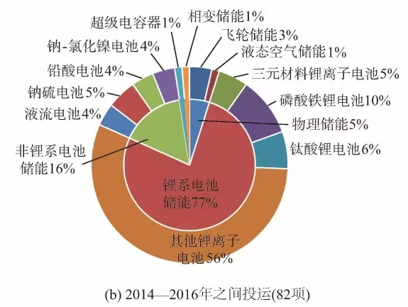 鋰系電池為MW級儲能調(diào)頻應用主流類型,其中鈦酸鋰電池高倍率特性和較好的循環(huán)壽命,應用前景廣闊。鈉硫、鉛酸電池在2014年之前具有前期優(yōu)勢,之后鉛炭電池涉入。儲能技術(shù)類型呈多元趨勢,未來重力儲能、氫儲能等將應用于調(diào)頻領(lǐng)域。