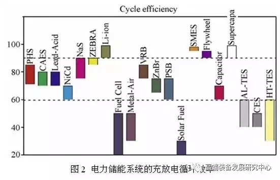 PHS-抽水蓄能;CAES-壓縮空氣;Lead-Acid:鉛酸電池;NiCd:鎳鎘電池;NaS:鈉硫電池;ZEBRA:鎳氯電池;Li-ion:鋰電池;Fuelcell:燃料電池;Metal-air:金屬空氣電池;VRB:液流電池;ZnbBr:液流電池;PSB:液流電池;SolarFuel:太陽(yáng)能燃料電池;SMES:超導(dǎo)儲(chǔ)能;Flywheel:飛輪; Capacitor/ Supercapcitor:電容/超級(jí)電容;AL-TES:水/冰儲(chǔ)熱/冷系統(tǒng);CES:低溫儲(chǔ)能系統(tǒng);HT-TES:儲(chǔ)熱系統(tǒng)。