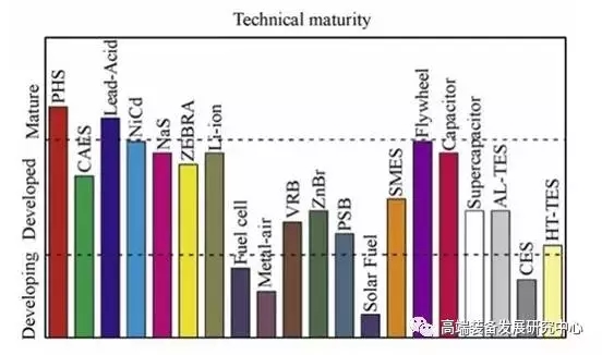 各類(lèi)儲(chǔ)能技術(shù)的成熟度及優(yōu)缺點(diǎn)對(duì)比