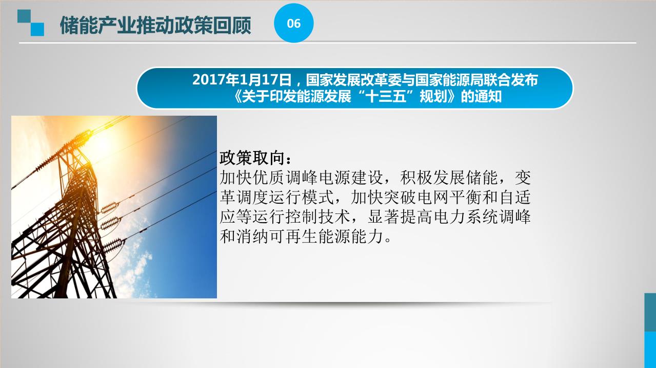這是國家發(fā)改委關(guān)于能源十三五的規(guī)劃,在這個政策里面也提到了關(guān)于加快優(yōu)質(zhì)調(diào)峰電源建設(shè),積極發(fā)展儲能。