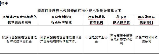 國家能源局綜合司關(guān)于征求對擬組建能源行業(yè)超級電容器儲能標準化技術(shù)委員會意見的函
