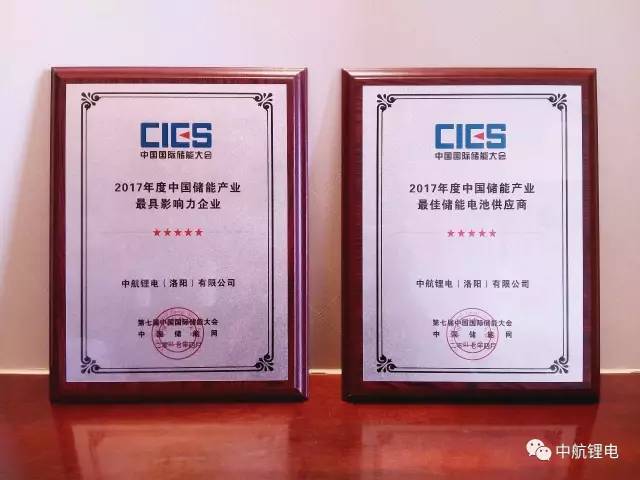 此次大會上,中航鋰電(洛陽)有限公司(以下簡稱“中航鋰電”)榮獲2017年度中國儲能產業(yè)最具影響力系列獎項之“儲能行業(yè)最具影響力企業(yè)” 以及“最佳儲能電池供應商”兩項行業(yè)殊榮。