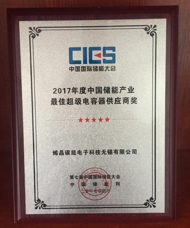 烯晶碳能電子科技無錫有限公司堅持“活性材料”為超級電容器技術(shù)核心,堅持高品質(zhì)高可靠性的產(chǎn)品設(shè)計、制造理念,其產(chǎn)品在能量密度、循環(huán)性能等方面已超越國際水平,在國內(nèi)外市場具備了一定的享譽度,形成了“要用高品質(zhì)、高可靠性超級電容器,選擇美國MAXWELL中國GMCC”的評價,榮獲“2017年度中國儲能產(chǎn)業(yè)最佳超級電容器供應(yīng)商獎”。