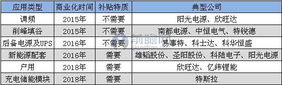 2000年以來,我國電網(wǎng)峰谷差逐年增大,多數(shù)電網(wǎng)的高峰負(fù)荷增長幅度在10%左右甚至更高,而低谷負(fù)荷的增長幅度則維持在5%甚至更低。峰谷差的增加幅度大于負(fù)荷的增長幅度,在電網(wǎng)中引入儲能系統(tǒng)是實現(xiàn)電網(wǎng)調(diào)峰的迫切需求。目前傳統(tǒng)電網(wǎng)削峰填谷已經(jīng)可以實現(xiàn)無補貼的商業(yè)化推廣;后備電源及UPS儲能也不需要補貼;新能源發(fā)電可按一定比例配套儲能,但尚需補貼;另外,戶用儲能和充儲放一體化充電站等市場規(guī)模較小,且需要補貼才能推廣。綜合來看,我國儲能行業(yè)商業(yè)化在削峰填谷領(lǐng)域最先實現(xiàn)。