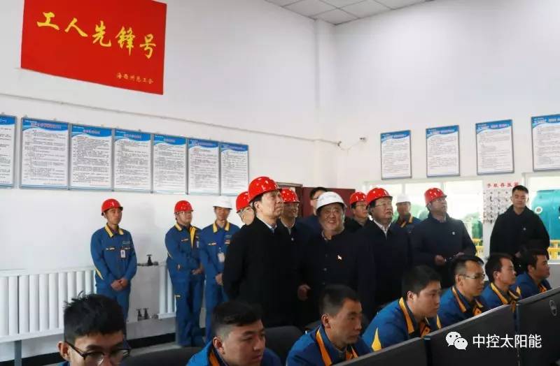 李源潮副主席一行參觀了一期工程10MW電站的鏡場(chǎng)、電站控制室以及汽輪機(jī)平臺(tái)。參觀過(guò)程中,田軍向李源潮副主席匯報(bào)了公司的發(fā)展情況、光熱儲(chǔ)能電站的工藝流程、聚光、吸熱、儲(chǔ)熱等關(guān)鍵核心技術(shù)、創(chuàng)新亮點(diǎn)以及光熱產(chǎn)業(yè)的未來(lái)發(fā)展方向。李源潮副主席饒有興趣地對(duì)光熱電站的技術(shù)、設(shè)備及光電轉(zhuǎn)換效率等進(jìn)行了一一了解。當(dāng)了解到10MW電站完全采用中控太陽(yáng)能公司自主創(chuàng)新的技術(shù)及國(guó)產(chǎn)化裝備,并且是中國(guó)首座全球第三座并網(wǎng)發(fā)電的規(guī)?;瘍?chǔ)能塔式光熱電站時(shí),李源潮副主席指出:“光熱發(fā)電是個(gè)新興產(chǎn)業(yè),你們做得很好,海西州在新能源產(chǎn)業(yè)上做得也相當(dāng)不錯(cuò),取得了可喜的成就,希望你們?cè)诠鉄岚l(fā)電領(lǐng)域進(jìn)一步加強(qiáng)研發(fā)力度,不斷提高整體轉(zhuǎn)化效率”。在了解到光熱發(fā)電產(chǎn)業(yè)目前面臨的困難時(shí),李源潮副主席說(shuō):“解決新能源電站的輸出問(wèn)題,國(guó)家目前已著手在編制西電東輸?shù)姆桨?,將?huì)陸續(xù)實(shí)施,光熱發(fā)電行業(yè)大有可為!”。