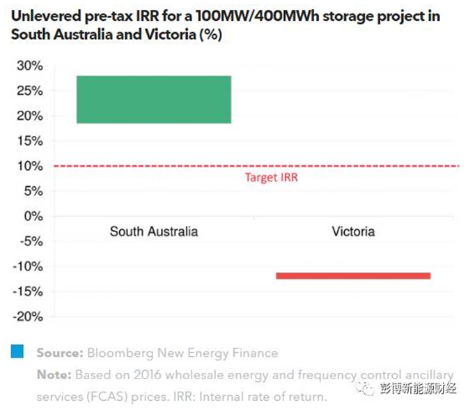 根據(jù)2016年的能源批發(fā)價(jià)和頻率控制輔助服務(wù)價(jià)(FCAS),南澳州電池項(xiàng)目的非杠桿內(nèi)部收益率可達(dá)18%-29%。然而,能源批發(fā)價(jià)和輔助服務(wù)價(jià)格走勢(shì)尚不明朗。如果南澳州效仿鄰近的維多利亞州投建新電廠和大量能源儲(chǔ)備系統(tǒng),或者建立額外的輸電線路,那么就會(huì)壓低這一電池系統(tǒng)的價(jià)格,而該項(xiàng)目就會(huì)面臨虧損。