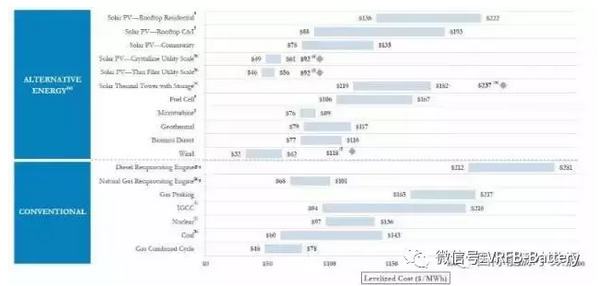 同時,美國咨詢公司LAZARD日前也發(fā)布了儲能技術(shù)成本的最新報告,披露不同儲能技術(shù)在美國各類應用場景下(電網(wǎng)系統(tǒng)、削峰填谷、頻率調(diào)節(jié)、配電網(wǎng)變電站、微電網(wǎng)、商業(yè)設施、家庭)的最新平準成本數(shù)據(jù)。