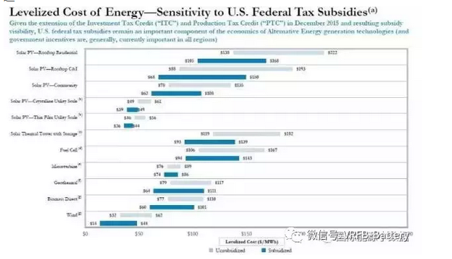如果考慮聯(lián)邦稅收優(yōu)惠,那么各類替代能源的全生命周期平準成本下降幅度可達30%: