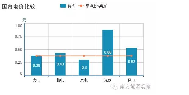 有關(guān)專家和研究機(jī)構(gòu)對(duì)中國(guó)電價(jià)與OECD國(guó)家、金磚國(guó)家及周邊主要國(guó)家進(jìn)行了對(duì)比。總體結(jié)論是,中國(guó)電價(jià)總水平在國(guó)際上處于中等偏下水平,從電價(jià)結(jié)構(gòu)來(lái)看,其中,工商業(yè)電價(jià)處于中等水平,居民電價(jià)處于較低水平,主要原因是中國(guó)工商業(yè)用戶承擔(dān)了對(duì)居民、農(nóng)業(yè)的交叉補(bǔ)貼。目前,中國(guó)發(fā)電平均上網(wǎng)電價(jià)約每千瓦時(shí)0.377元。其中,火電0.38元、核電0.43元、水電0.30元、光伏0.88元、風(fēng)電0.53元。