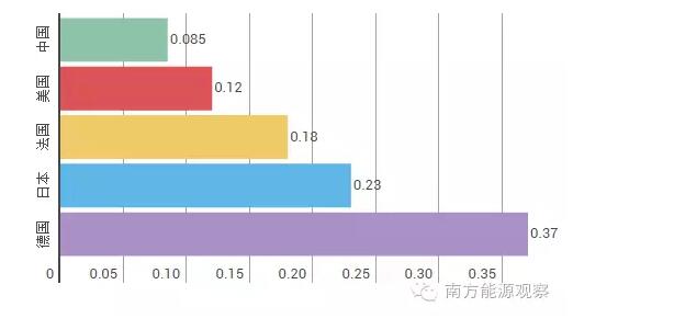 居民電價(jià)處于較低水平。中國(guó)居民電價(jià)約為每千瓦時(shí)0.085美元,低于美國(guó)(0.12美元)、法國(guó)(0.18美元)、日本(0.23美元)、德國(guó)(0.37美元)。