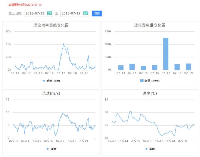 運(yùn)營(yíng)人員只需登錄能量魔方大數(shù)據(jù)管理平臺(tái)(http://www.eeechina.net),點(diǎn)擊“運(yùn)營(yíng)管理”頻道在線定位電場(chǎng)地址,輸入總裝機(jī)容量及所選風(fēng)機(jī)機(jī)型,依據(jù)氣象預(yù)測(cè)結(jié)果、所選機(jī)型發(fā)電參數(shù),即可實(shí)時(shí)在線獲得未來(lái)七天內(nèi)的中短期風(fēng)電場(chǎng)預(yù)測(cè)理論發(fā)電能力的評(píng)估報(bào)告,從而為電場(chǎng)投資方提供關(guān)鍵數(shù)據(jù)參考,并幫助電場(chǎng)運(yùn)維人員合理安排電場(chǎng)的運(yùn)行方式、減少棄風(fēng)、提高電場(chǎng)的經(jīng)濟(jì)效益。