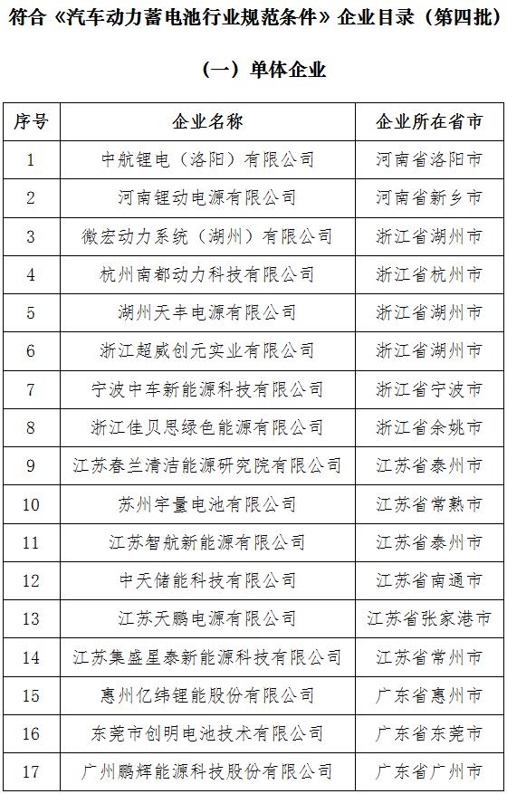 附件:符合《動力蓄電池行業(yè)規(guī)范條件》企業(yè)名錄(第四批)
