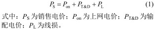 目前銷售電價由上網(wǎng)電價、輸配電價和線損3部分構成[2],計算公式為
