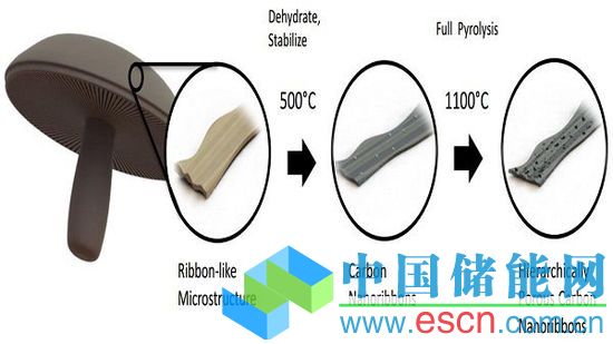 研究團(tuán)隊(duì)發(fā)現(xiàn),從大褐菇頂帽上提取的表皮、再將它加熱至500℃(932℉),就可以轉(zhuǎn)換成一種自然衍生而來的類碳納米帶結(jié)構(gòu)。