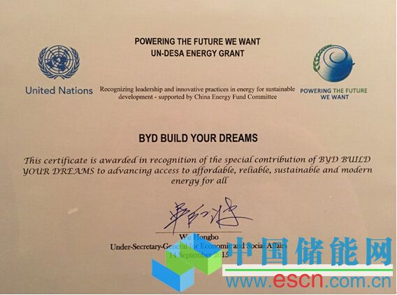 比亞迪榮獲“聯(lián)合國能源特別獎(jiǎng)”