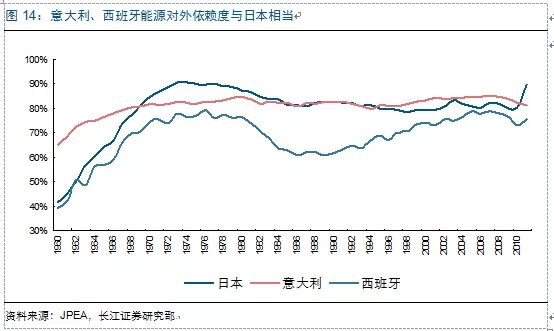 2011年3月,日本大地震導致核電站出現(xiàn)核泄漏,核污染問題導致日本國內(nèi)去核電化的呼吁愈演愈強,最終使得日本政府放棄核電。而核電站裝機容量及發(fā)電量占到日本總發(fā)電容量及發(fā)電量的20%以上,核電的退出導致日本火電發(fā)電比例上升,這對于能源短缺的日本帶來的最直接的后果便是能源對外依賴度的快速上升。