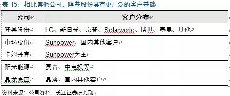 相比其他單晶硅片企業(yè),公司良好的產(chǎn)業(yè)布局與技術(shù)優(yōu)勢為公司帶來明顯的成本優(yōu)勢。同時,作為全球單晶硅片龍頭企業(yè),公司具有廣泛的客戶基礎與客戶優(yōu)勢,目前公司客戶中包括LG、新日光、京瓷、Solarworld、博世等大型單晶電池企業(yè),同時此前參股的賽昂電力近期被Solarcity收購,后期有望成為公司另一主要客戶。