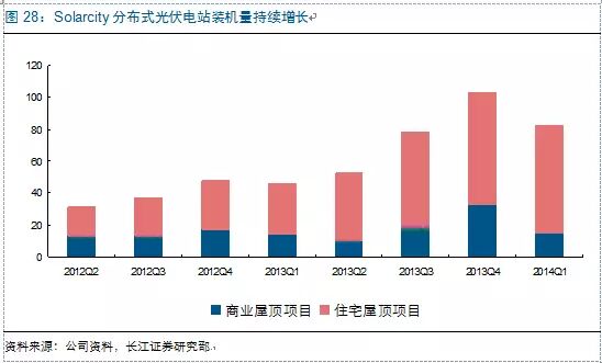 (1)小終端用戶方面,由于美國中小個體較高的電價水平,使得他們具有降低電費的需求,但光伏電站較高的初始投資使得多數(shù)人望而卻步,Solarcity推出的租賃模式使終端用戶不承擔電站建設一次性投入,也能享受到分布式電站帶來的收益。