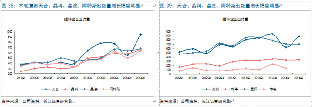 首先出貨量方面,伴隨本次復蘇,天合、晶科、晶澳、阿特斯出貨量增長幅度明顯,而英利、韓華、昱輝、中電的增長幅度相對較小。