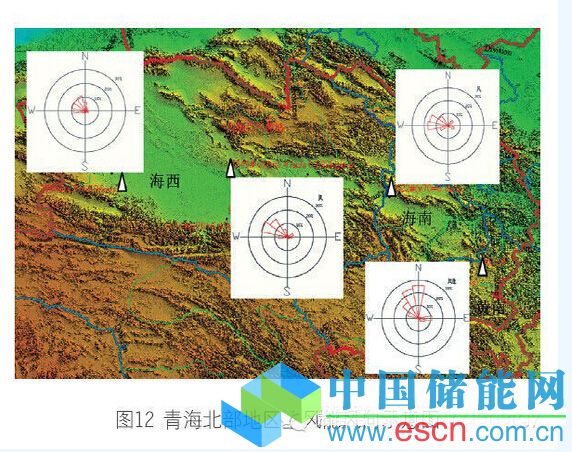 青藏高原冬季為冷源,邊界層里常出現(xiàn)冷高壓,高原北部盛行西風(fēng),南部盛行東風(fēng);夏季相反,青藏高原為熱源,邊界層里多出現(xiàn)熱低壓,高原北部盛行東風(fēng),南部盛行偏西風(fēng)。圖12青海北部地區(qū)主風(fēng)能風(fēng)向示意圖。