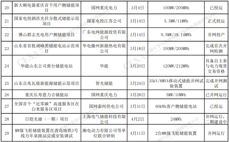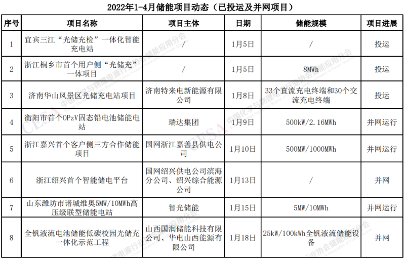 2022年1-4月儲能項目投運(yùn)及并網(wǎng)統(tǒng)計: