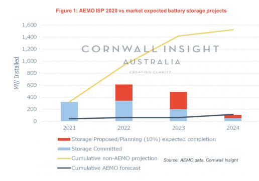 研究報(bào)告指出,根據(jù)其綜合系統(tǒng)計(jì)劃,澳大利亞能源市場運(yùn)營商(AEMO)預(yù)測到2024年投入使用的電池儲(chǔ)能系統(tǒng)低于Cornwall Insight Australia公司的預(yù)測。