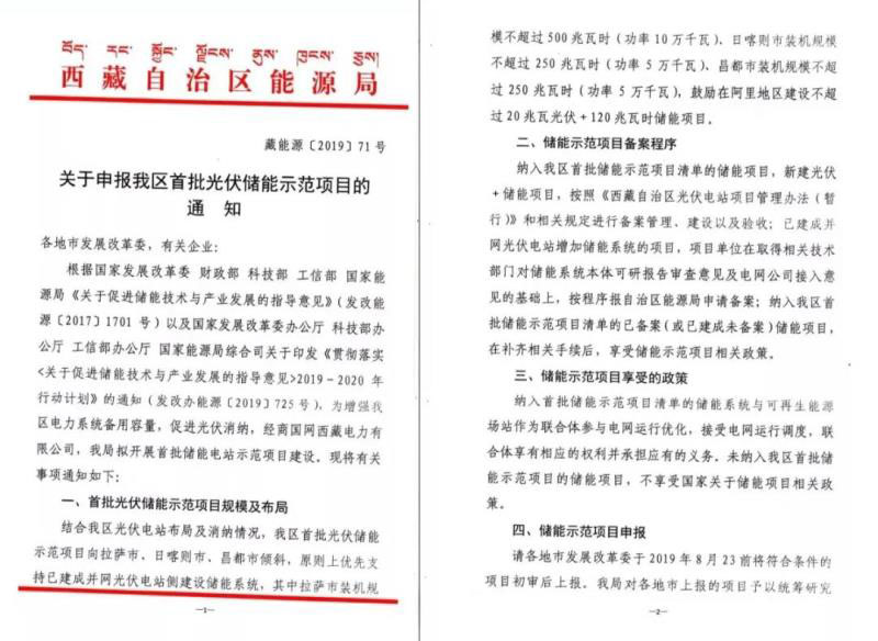 2019年8月,西藏開啟了首批光伏儲能示范項目征集通知,將優(yōu)先支持拉薩、日喀則、昌都已建成光伏電站側(cè)建設(shè)儲能系統(tǒng),規(guī)模不超過200MW/1GWh,同時鼓勵在阿里地區(qū)建設(shè)20MW光伏+120MWh儲能項目??傄?guī)模為220MW光伏+1.12GWh儲能。