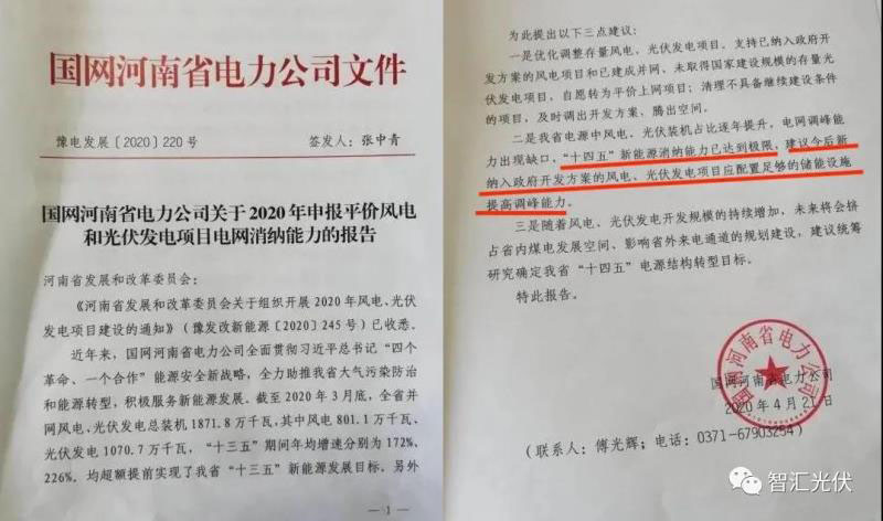 4月21日,國網(wǎng)河南省電力公司的《關(guān)于2020年申報平價風(fēng)電和光伏發(fā)電項目電網(wǎng)消納能力的報告》提出: