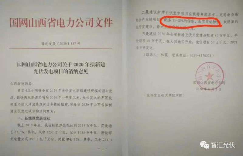 6月2日,山西省電力公司印發(fā)《關(guān)于2020年擬建光伏項目的消納意見》中建議: