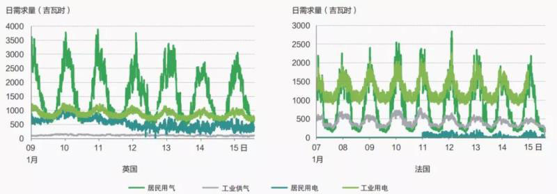 圖5 英國和法國電網(wǎng)與天然氣管網(wǎng)負荷波動對比