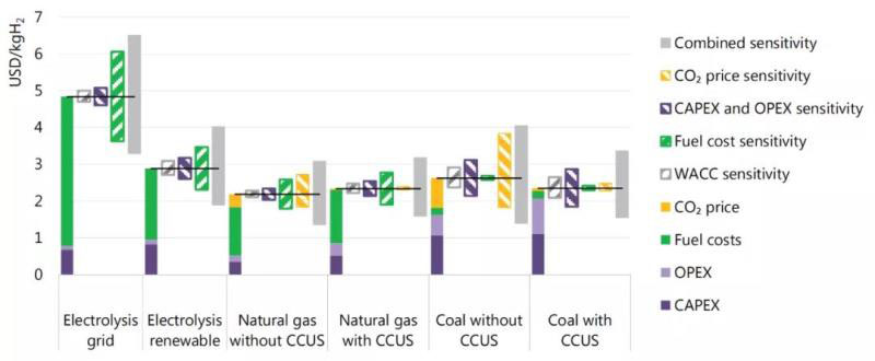 圖1 2023年不同技術(shù)制氫成本預(yù)測
