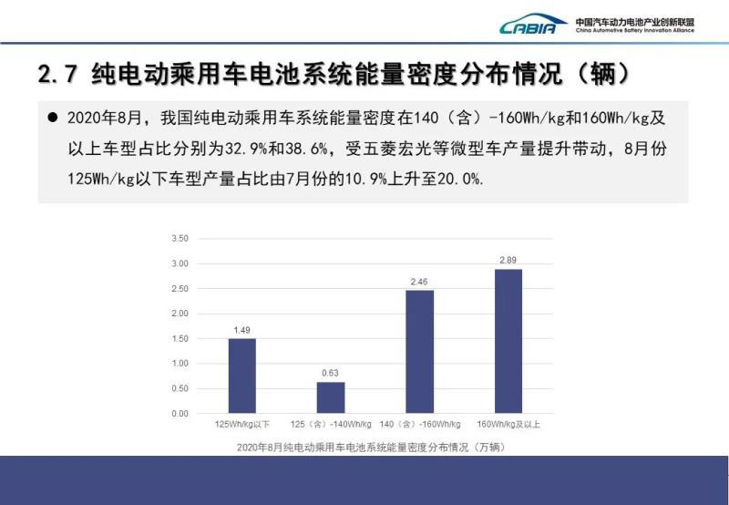 裝車量方面,2020年8月我國(guó)動(dòng)力電池裝車量5.1GWh,同比上升48.3%,環(huán)比上升2.2%,其中三元電池共計(jì)裝車3.5GWh,同比上升30.0%,環(huán)比上升7.9%;磷酸鐵鋰電池共計(jì)裝車1.6GWh,同比上升144.0%,環(huán)比下降9.6%。1-8月,我國(guó)動(dòng)力電池裝車量累計(jì)27.6GWh,同比累計(jì)下降27.6%。其中三元電池裝車量累計(jì)19.4GWh,占總裝車量70.2%,同比累計(jì)下降25.8%;磷酸鐵鋰電池裝車量累計(jì)8.0GWh,占總裝車量29.1%,同比累計(jì)下降27.1%。