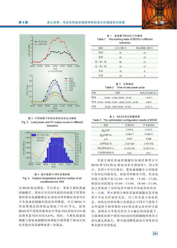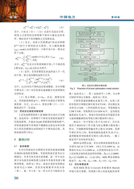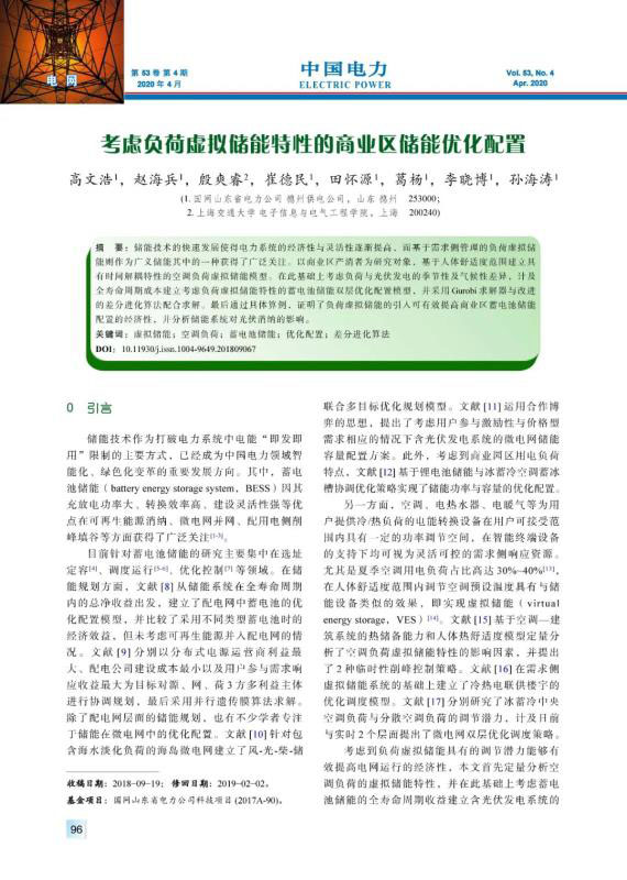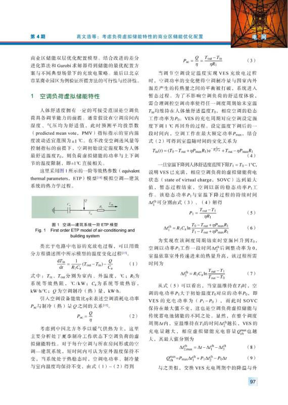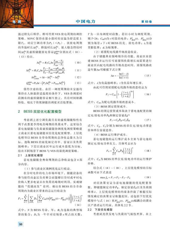 儲能技術的快速發(fā)展使得電力系統(tǒng)的經(jīng)濟性與靈活性逐漸提高,而基于需求側管理的負荷虛擬儲能則作為廣義儲能其中的一種獲得了廣泛關注。以商業(yè)區(qū)產(chǎn)消者為研究對象,基于人體舒適度范圍建立具有時間解耦特性的空調負荷虛擬儲能模型。在此基礎上考慮負荷與光伏發(fā)電的季節(jié)性及氣候性差異,計及全壽命周期成本建立考慮負荷虛擬儲能特性的蓄電池儲能雙層優(yōu)化配置模型,并采用Gurobi求解器與改進的差分進化算法配合求解。最后通過具體算例,證明了負荷虛擬儲能的引入可有效提高商業(yè)區(qū)蓄電池儲能配置的經(jīng)濟性,并分析儲能系統(tǒng)對光伏消納的影響。