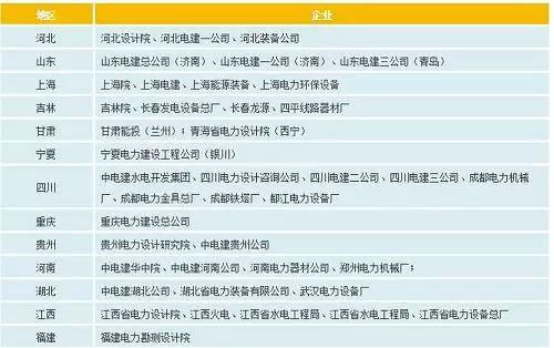 14個(gè)省(市、區(qū))電力勘測(cè)設(shè)計(jì)、工程、裝備制造企業(yè)系統(tǒng)企業(yè):