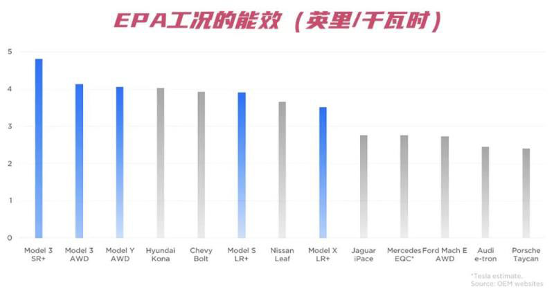 4.特斯拉擁有電動汽車中的最高能效