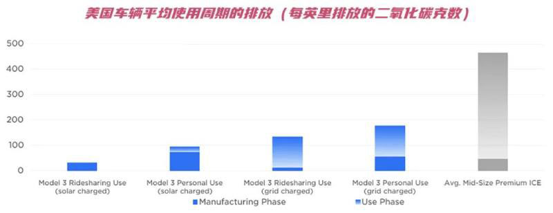 2.特斯拉電動汽車使用周期排放遠低于車型平均水平